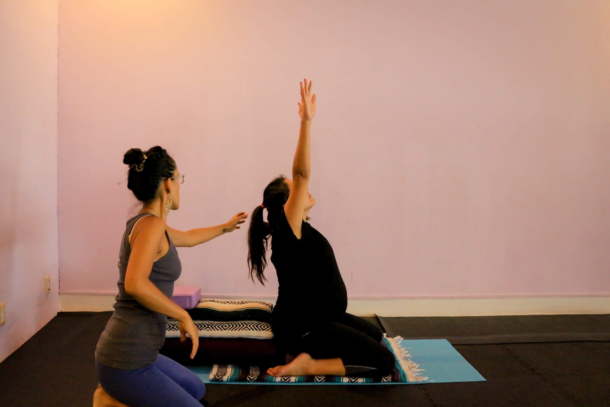 Posturas de yoga, ejercicos de respiración y masajes específicos para tener una labor de parto en movimiento y conexión.
